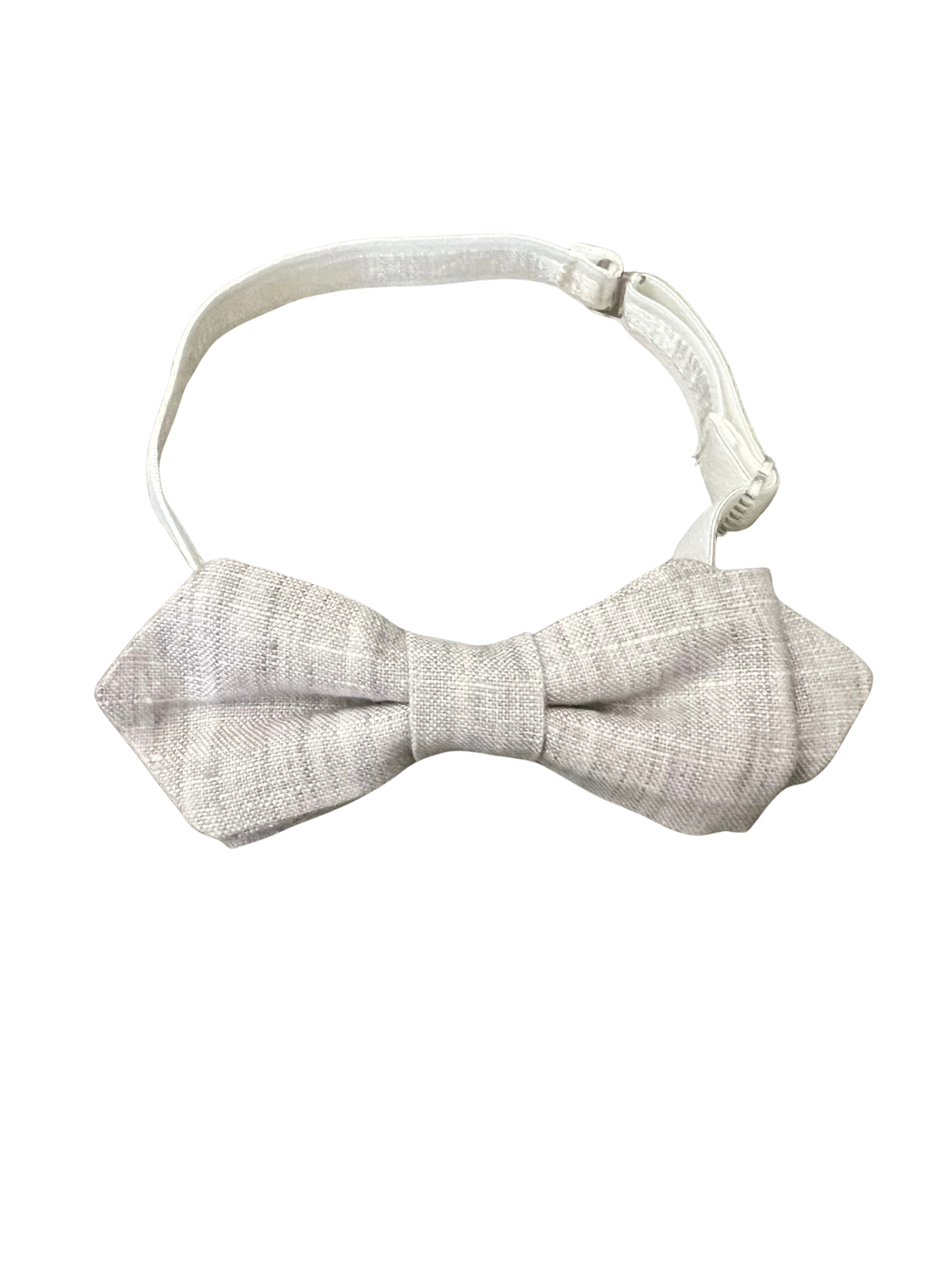 Adjustable bow tie suits size 0-18months. Light grey linen.